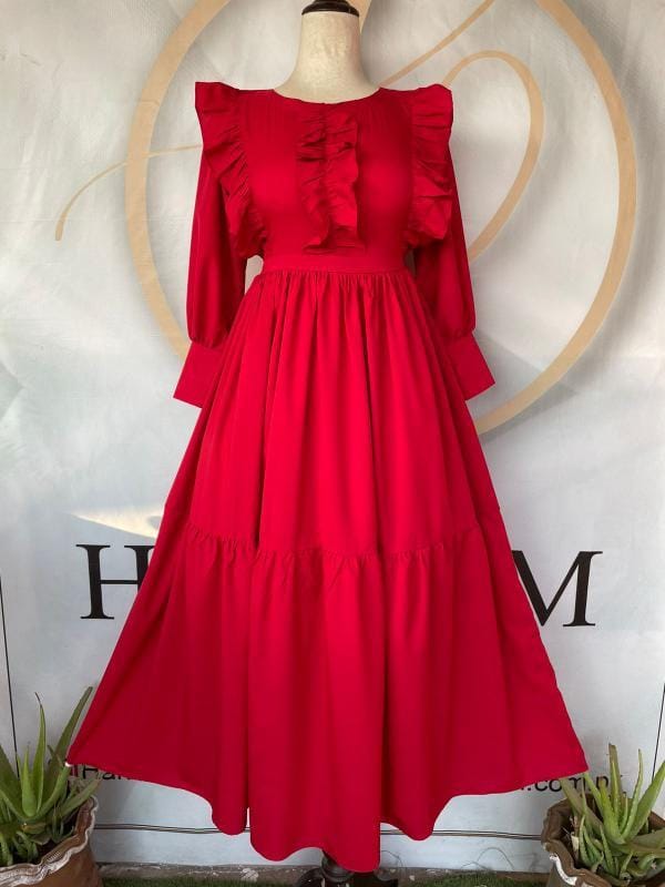 👗 Style: Full-length flare with a tiered hemline, giving you graceful movement and a flowy look.