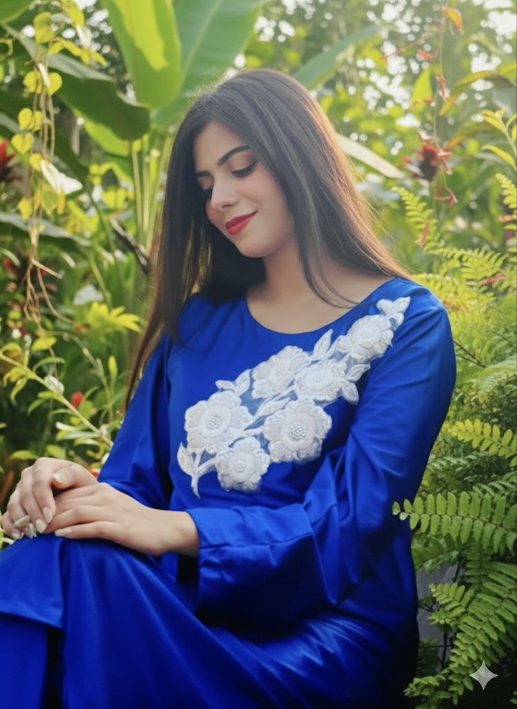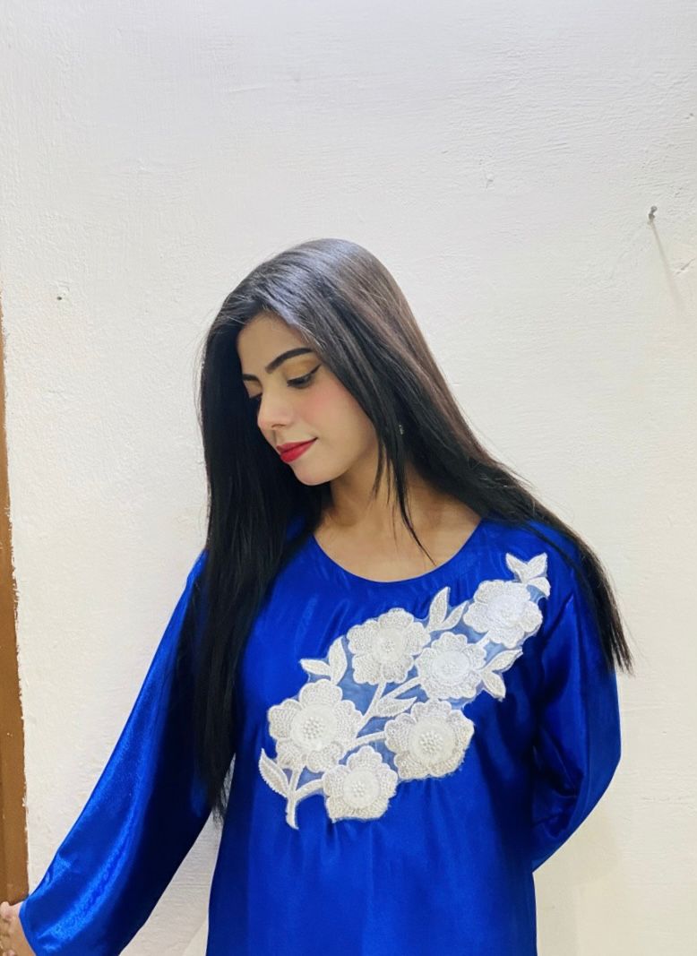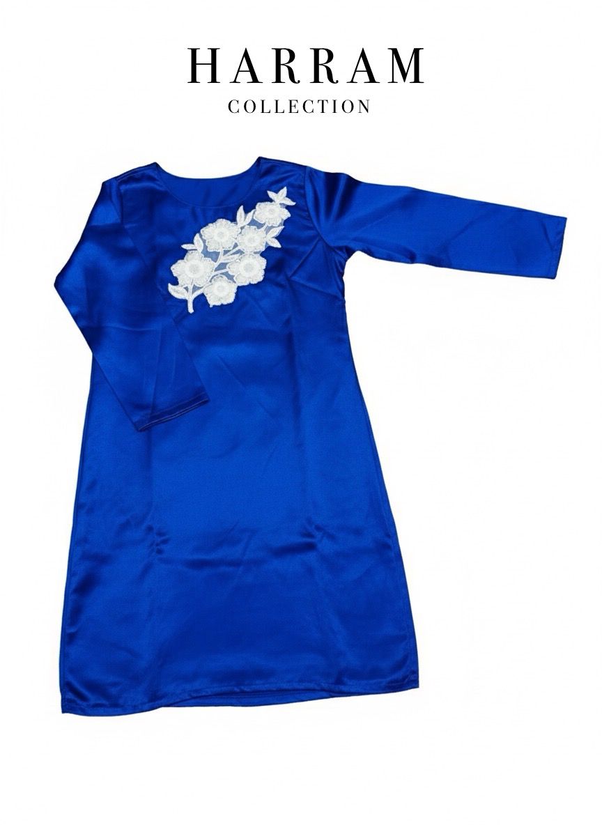 Premium Royal Blue Velvet 2-Piece Dress – White Floral Applique Work