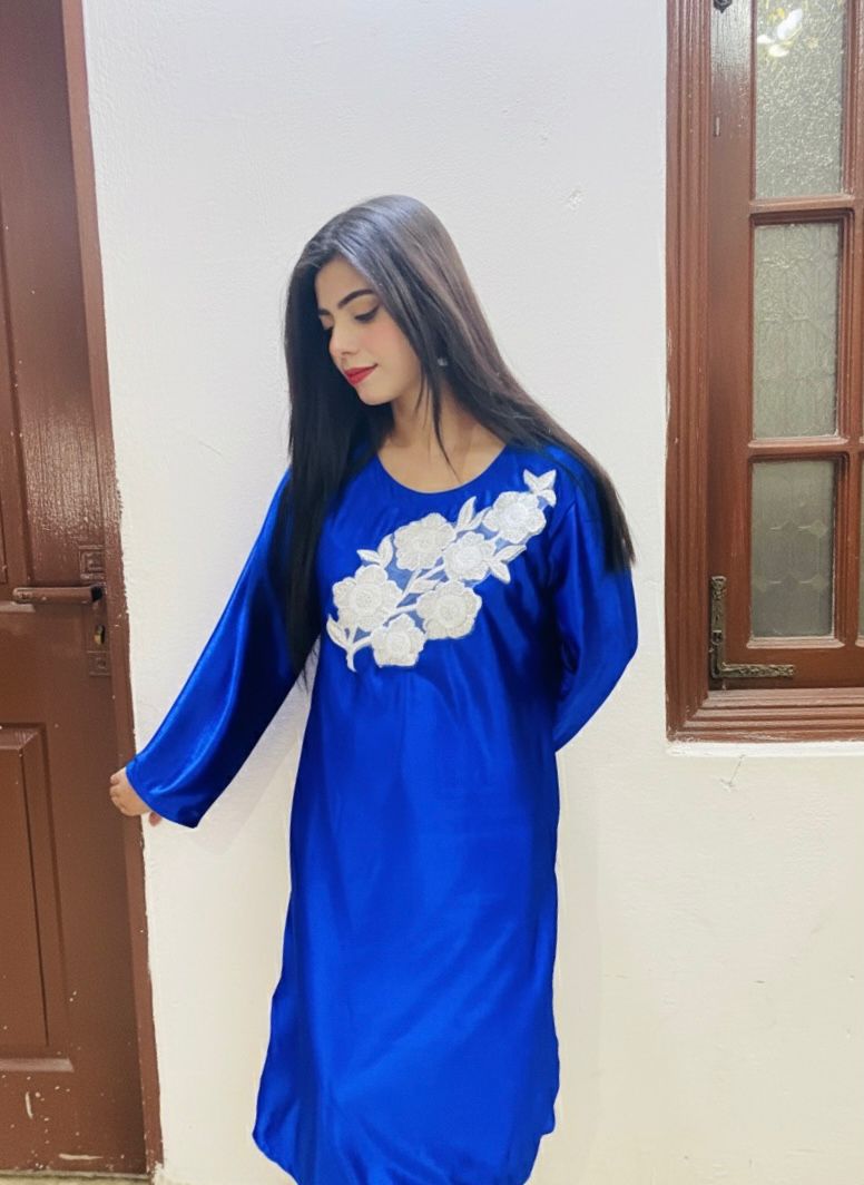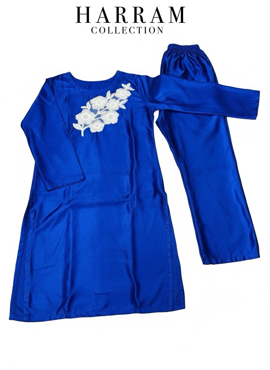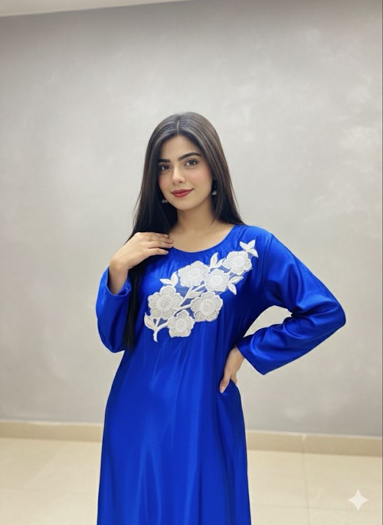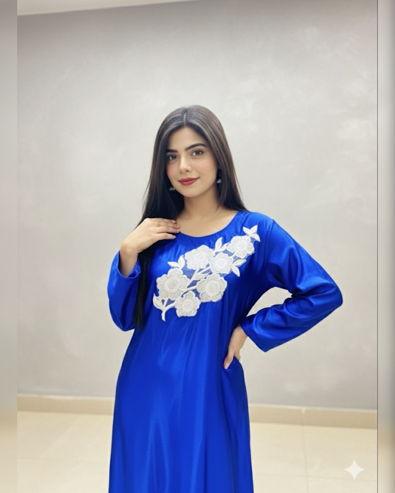 Premium Royal Blue Velvet 2-Piece Dress – White Floral Applique Work