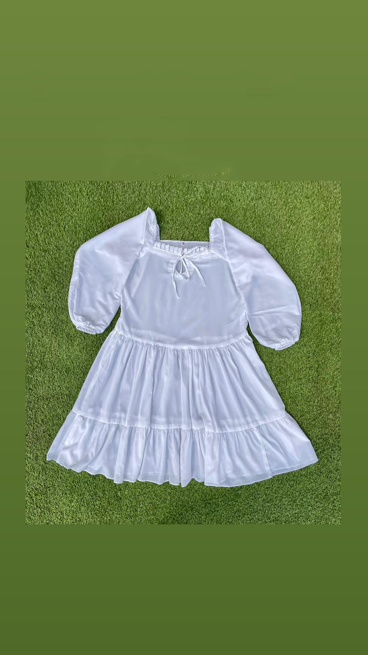 White Georgette Tiered Long Top 👚✨ | Puff Sleeves & Flowy Style